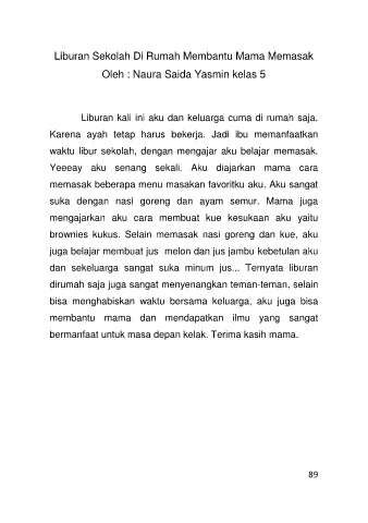 waktu libur sekolah, dengan mengajar aku belajar memasak.